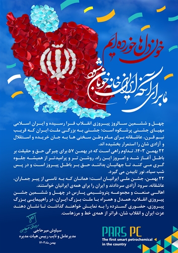 پیام مدیرعامل شرکت پتروشیمی پارس به مناسبت ۲۲ بهمن ، سالروز پیروزی شکوهمند انقلاب اسلامی
