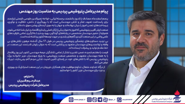 پیام مدیرعامل پتروشیمی پردیس بهمناسبت روز مهندس