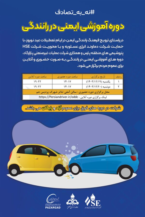 این دورهها که به دو صورت حضوری و آنلاین برگزار میشوند، با هدف ارتقای آگاهی رانندگان، خانواده ها و هم وطنان عزیزمان درباره اصول رانندگی ایمن و پیشگیری از تصادفات طراحی شدهاند.