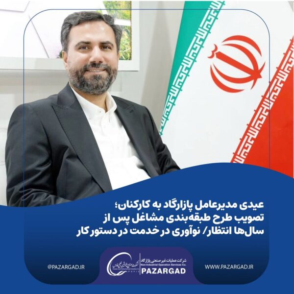 عیدی مدیرعامل پازارگاد به کارکنان؛تصویب طرح طبقهبندی مشاغل پس از سالها انتظار/ نوآوری در خدمت در دستور کار