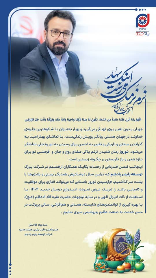 پیام تبریک نوروزی مدیرعامل شرکت پلیمر پاد جم