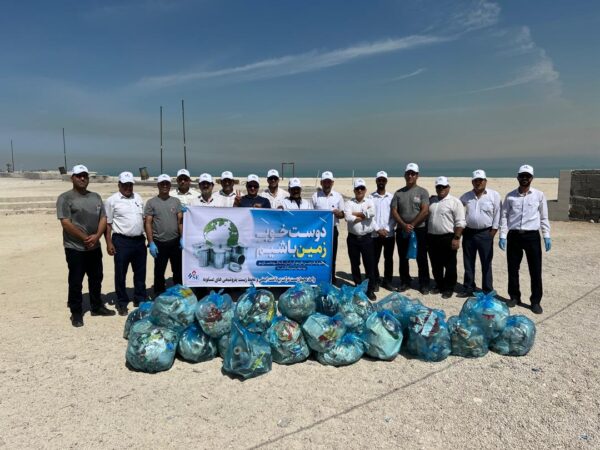 پاکسازی ساحل هاله توسط پرسنل شرکت ایمنی، بهداشت و محیط زیست پتروشیمی های عسلویه