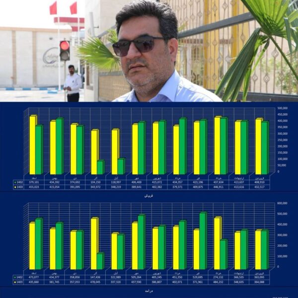 در محل درآمدها هم شاهد افزایش ۴۰ درصدی مبلغ فروش شرکت هستیم. درامد شرکت از ۱۲۳ همت در سال ۱۴۰۲ به ۱۷۲ همت در سال ۱۴۰۳ رسیده است.