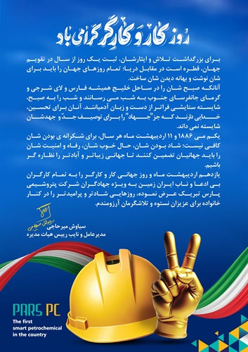 پیام تبریک مدیرعامل شرکت پتروشیمی پارس به مناسبت روز کار و کارگر