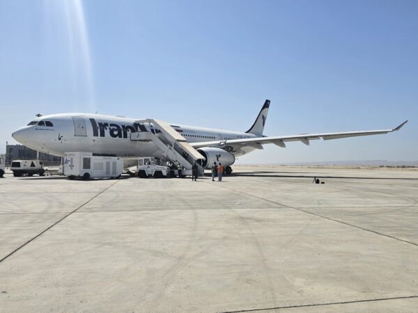 هواپیمای جمهوری اسلامی ایران (هما) با همکاری شرکت پازارگاد در فرودگاه عسلویه به زمین نشست