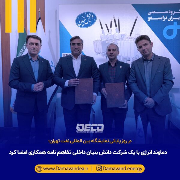 این تفاهم نامه با حضور مهندس پیمان اصفهانی، مدیرعامل دماوندانرژی، با یک شرکت دانش بنیان داخلی در راستای تولید و تامین انواع ترانسفورماتورهای قدرت، فوق توزیع، توزیع و راکتورهای مورد نیاز یوتیلیتی متمرکز فاز دو پتروشیمی های منطقه پارس امضا شد.