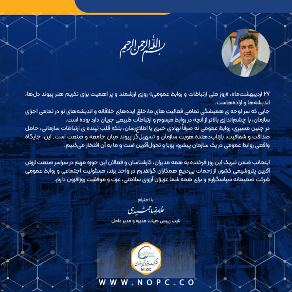 پیام مدیرعامل شرکت پتروشیمی نوری به مناسبت، گرامیداشت روز ارتباطات و روابط عمومی