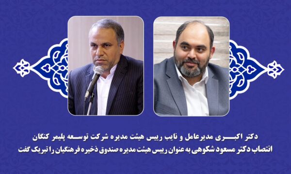 مدیرعامل شرکت توسعه پلیمر کنگان انتصاب مسعود شکوهی به عنوان رییس هیئت مدیره صندوق ذخیره فرهنگیان تبریک گفت.