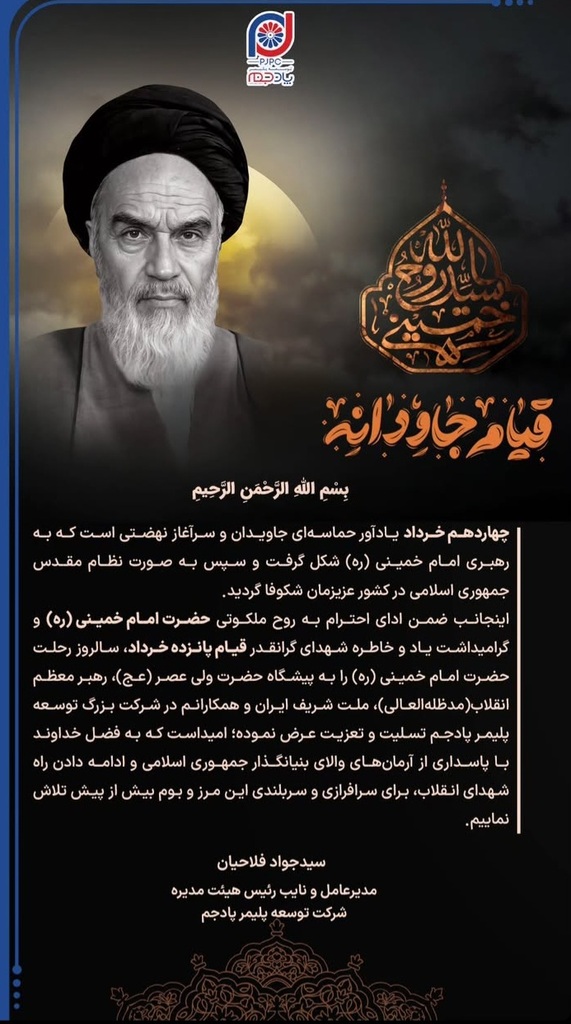 عسلویه آنلاین - پیام مهندس فلاحيان مدیرعامل شرکت پتروشیمی پادجم به مناسبت سالگرد ارتحال امام خمینی ره
