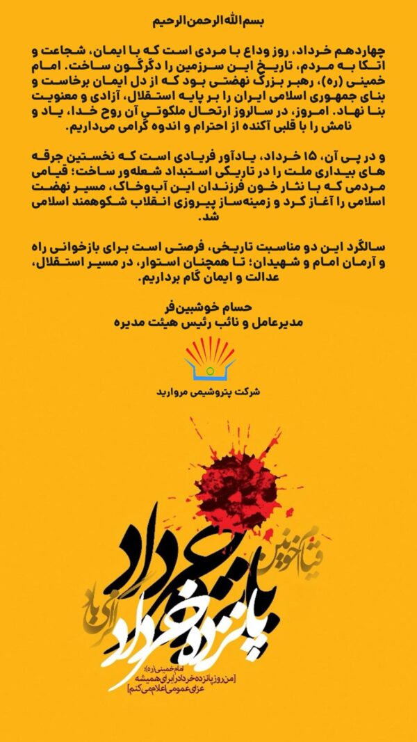 پیام مدیرعامل پتروشیمی مروارید به مناسبت فرارسیدن سالروز رحلت حضرت امام خمینی (ره)