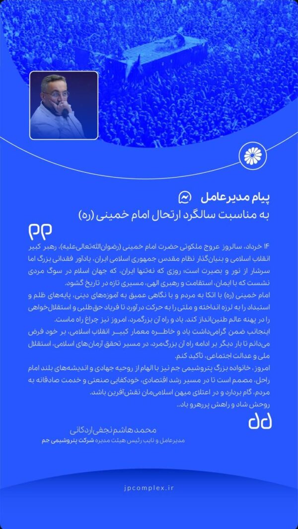 پیام مدیر عامل پتروشیمی جم به مناسبت ارتحال امام خمینی (ره)