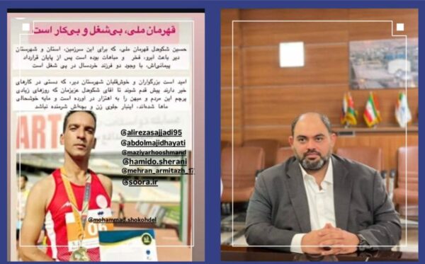 حسین شکوه دل دوندهی اهل شهرستان دیر استان بوشهر که پیشتر در مسابقات دو و میدانی عمان برای ایران افتخار آفریده بود و بعدها هم توانسته بود به نیابت از شهدای مدافع حرم در مسابقات دو و میدانی کشور افتخار آفرینی کند روزهای سختی را سپری می کرد و فعالان اجتماعی ورزشی خواهان تامین شغلی و معیشتی این قهرمان ملی شده بودند.
