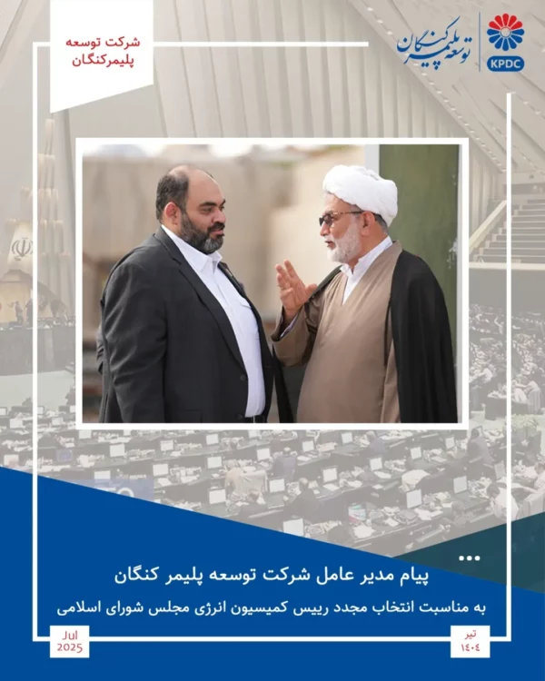 پیام مدیر عامل شرکت توسعه پلیمر کنگان به مناسبت انتخاب مجدد رییس کمیسیون انرژی مجلس شورای اسلامی