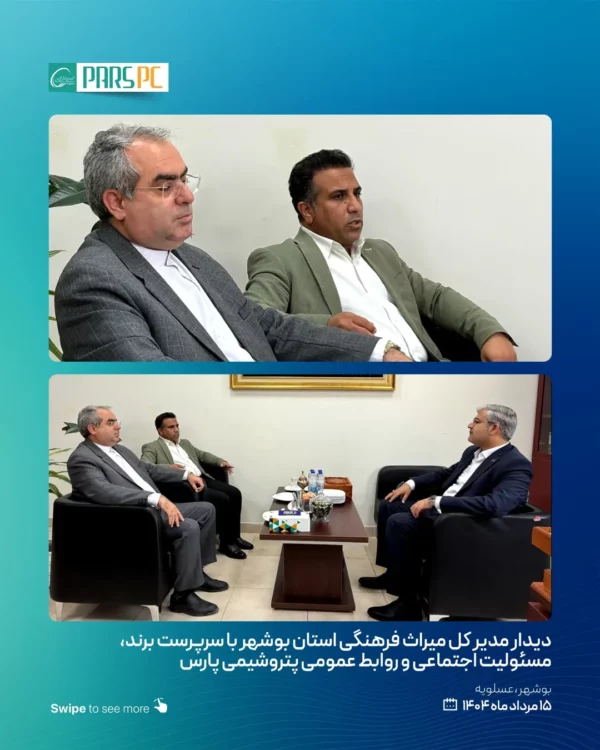 دیدار مدیر کل میراث فرهنگی استان بوشهر با سرپرست برند، مسئولیت اجتماعی و روابط عمومی پتروشیمی پارس