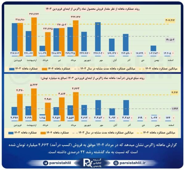 فروش ۴,۶۶۳ میلیارد تومانی در مرداد ماه نسبت به عملکرد ۳,۸۱۴ میلیارد تومانی تیر ماه، یک رشد ۲۲ درصدی را نشان میدهد.