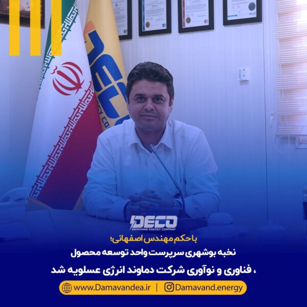 با حکم مهندس اصفهانی؛ نخبه بوشهری سرپرست واحد توسعه محصول، فناوری و نوآوری شرکت دماوند انرژی عسلویه شد