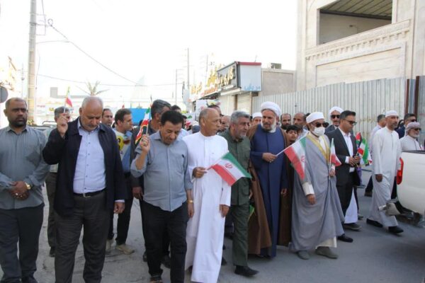 به گزارش عسلویه آنلاین؛ از ساعات اولیه صبح، اقشار مختلف مردم اعم از خانواده ها، جوانان، دانش آموزان، فرهنگیان، کارکنان ادارات، بسیجیان، نیروی نظامی و انتظامی و مسئولان شهری و شهرستانی با تجمع در مسیرهای تعیین شده، با در دست داشتن پرچم های مقدس جمهوری اسلامی ایران و سردادن شعارهای انقلابی، حماسه ای ماندگار از وحدت، همدلی و بصیرت خلق کردند.